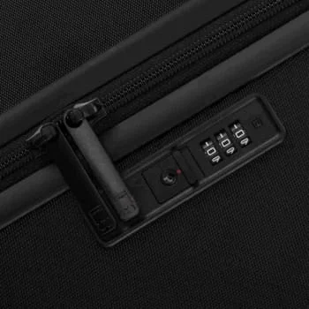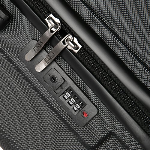 A sleek, built-in TSA-approved combination lock designed to secure your luggage seamlessly. The low-profile design sits flush with the suitcase for a clean look, keyless convenience, and safe TSA inspection without damage