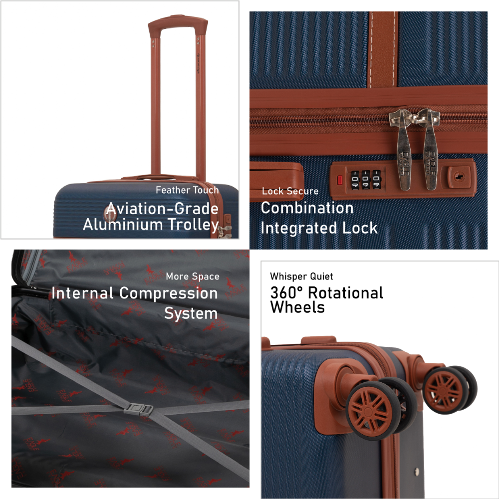 Move through your travels with confidence and speed with JET FORCE Luggage. Built from high-quality scratch-resistant ABS, this collection protects your belongings while maintaining a sleek, modern look. Its 360° smooth-rolling double spinner wheels offer effortless, silent mobility in any environment, from busy airports to city streets. With a reinforced telescopic trolley, ergonomic soft-grip handles, and an advanced anti-theft zipper system, JET FORCE combines performance, security, and comfort for travelers who demand reliability and agility at every step.